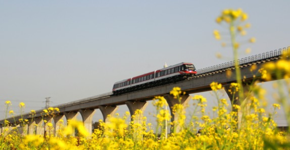 長沙磁浮快線是湖南省構建國家中部空鐵一體化綜合交通樞紐、促進...